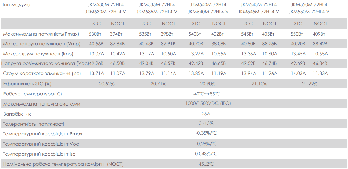 The latest technologies used in the JKM-550M-72HL4-V modules allow you to increase efficiency and minimize the impact of microcracks and shading of the panel.